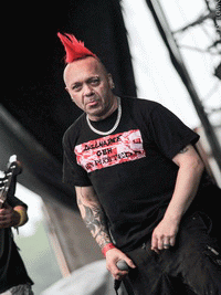 Direction la Supositor où le combo crust / grind vient de pointer le bout de son nez, que le chaos commence ! Je pense que le terme de "chaos" est plutôt bien approprié pour ce qui est de leur prestation, la profondeur de la partie grind paraît à première vue assez maîtrisée, mais l’ensemble se détache très rapidement comme quelque chose de brouillon, on sent bien que Dean Jones a fait connaissance avec le bar VIP et les liqueurs cantonales ! La prestation va, pour moi, s’enliser, ça chahute, ça pogote anarchiquement, bref, EXTREME NOISE TERROR : très peu pour moi, ils auront au moins eu le mérite de nous préparer assez... activement... à l’arrivée d’un groupe aux cheveux défiants la gravité, THE EXPLOITED, et qu’importe la pluie, le public répond présent !