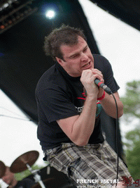 Le ventre toujours vide (trop de monde devant le stand bouffe), je reviens vers la scène pour découvrir INHUME, là encore un groupe de grindcore. La formation hollandaise comprend deux chanteurs qui mettront le chaos sur scène et dans le public. Il faut aimer le grind pour apprécier leur set et ce n'est pas mon cas. Mais à en entendre les gens, ils se sont montrés en maîtres de la discipline aujourd'hui.