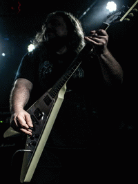 centre, Philipp Kruppa (chant / guitare) hurle en jouant, alignant quelques harmoniques