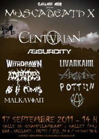 Ah… L’Alsace, son Riesling et… ABSURDITY avec son metalcore survitaminé. Bref, ce n’est pas spécialement mon style mais il faut reconnaître les qualités de représentation et le professionnalisme de cette formation qui propose un live pêchu et énervé à l’image de leur bassiste, plébiscité par une grande partie de l’audience. N’étant pas assez bourrée pour apprécier le set dans sa totalité, je décide de m’en aller et donc de louper CENTURIAN. Je n’ai encore aucune excuse mais, on m’en a soufflé une qui me paraît recevable, évidemment à prendre au 10ème degré : CENTURIAN, sont Hollandais, y’a pas de pinard en Hollande d’abord, sont hors sujet là, ils font que de la bière. Ouais bah ouais, on est au Muscadeath quoi…