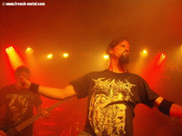 ALTERED BEAST entame les hostilités et malheureusement, j’ai juste envie de dire : ERROR 404 ! Non plus sérieusement, je n’ai pas su apprécier ni comprendre leur musique, ce groupe se revendique comme faisant du thrash mais, j’ai la fâcheuse impression qu’ils ne savent pas vraiment ce qu’ils font. Effectivement, ce n’est ni old school, ni moderne, j’ai trouvé ce concert très incipide, sans aucune saveur, la public était cruellement de marbre face à leur prestation. Je m’excuse d’être aussi difficile surtout que j’essaie d’être la plus cool possible avec les groupes que je vois en concert car la plupart essaie en général de se donner à fond. Mais ce n’est clairement pas pour moi, peut-être faudrait-il qu’ils trouvent davantage ce qu’il veulent faire en matière de musique, c’était plus heavy / thrash selon moi. Le groupe a essayé de chauffer le public vers la fin de leur set en jouant "Roots Bloody Roots" de Sepultura, mais sans succès selon moi. Je suis navrée de ne tirer aucun aspect positif de cette performance malgré l’apparence sympathique des membres.... Vraiment désolée...