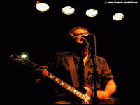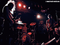 Il y a beaucoup de monde pour la première partie, LE SINGE BLANC, j’ai du mal à me frayer un chemin ! Ce groupe originaire de Metz est armé d’une batterie et de deux basses, c’est classe et pas que. Les trois musiciens s’amusent à déconstruire le rock pour le reconstruire en l’adaptant à leur formation très spéciale. Ils prennent des rythmes binaires simples qui, associés entre eux, donnent quelque chose de presque inqualifiable. Dire que c’est barré, cela ne serait pas assez original ; et dire que c’est original, cela ne serait pas assez barré… Je choisis la collision : c’est barréginal.