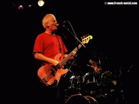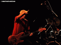 Peu de temps après, le power trio de Vancouver (composé de deux frères) parvient jusqu’à nous, lentement. Ils sont à Paris pour leur tournée "Instagramp 2012" et on espère trembler un peu non de non ! On aurait pu croire à une pyjama party au départ : Rob Wright (basse et chant) se traîne quasiment en pantoufles avec un vieux t-shirt rouge criard… fausse idée, car dès qu’il s’y met, un seul mot me vient à l’esprit : respect. Ils ont passé en revue presque tous leurs albums, et ceci sans pause s’il vous plaît ! Par-ci par-là, quelques titres expérimentaux où le batteur et le bassiste s’abandonnent à des jeux de voix. Le public est réceptif et attentif, et il finira par danser un peu plus violemment au fil de la soirée. Malgré un son punk très recherché, chaque morceau faisait preuve d’efficacité et de créativité. NOMEANSNO a su faire monter la pression progressivement, de la séduction le groupe est passé à l’agitation avec des titres comme "Jubilation", "Slave" ou "Obsessed", enfin on s’active ! Mon moment préféré sera pendant le rappel où le groupe exécutera une version de "Tower" pleine d’adrénaline et qui me restera en tête toute la semaine à venir.