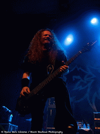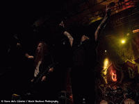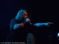 Place maintenant au death metal avec OBITUARY. Le groupe compte sur une solide fan base qui a fait le déplacement en nombre ce soir. La salle est bien remplie et les fans s'impatientent. Dès les premiers accords de "Internal Bleeding", le public est déjà poings levés et headbangue à l'unisson. Les rythmes sont très lourds et puissants, c'est autre chose qu'EXODUS, il faut être dans l'esprit death metal pour apprécier pleinement le concert. D'ailleurs, l'attitude du groupe colle à son style, John Tardy (chant) n’est pas un pro de la communication et mis à part quelques "Merci" par ci par là, il ne va pas interagir plus que ça avec le public. Mais il assure sur sa partie, tout comme son frère à la batterie Donald Tardy. C'est un peu l'attitude d'OBITUARY puisque les autres membres du groupe assurent niveau musical mais ne vont pas interpeller le public, mais apparemment ce n'est pas ça qui va les déranger. Le public est à fond et va se déchaîner avec "Bloodsoaked" ou encore "Ten Thousand Ways To Die", et cette ambiance va perdurer jusqu'à la fin du set avec un rappel qui ravira tous les fans avec "'Til Death", "Don't Care" avant d'achever la foule avec "Slowly We Rot" ! OBITUARY a assuré sa part du contrat même si je pense qu'avec juste une heure de concert, on reste un peu sur sa faim. Surtout pour les fans du groupe qui seraient ravis d'avoir des sets un peu plus longs.