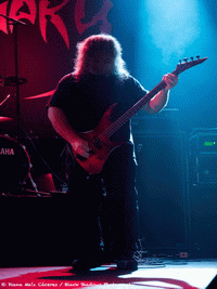 Place maintenant à l’un des plus grand groupes de thrash de sa génération : EXODUS ! Le set commence à fond avec "The Ballad Of Leonard And Charles", la salle est en pleine ébullition, le public est nombreux ! Les circle pits et slams vont devenir monnaie courante pour le reste de la soirée. L'anarchie continue avec un très bon "Blood In, Blood Out" parfaitement interprété par un Steve "Zetro" Souza qui est en grande forme, et à vrai dire sur chaque prestation du groupe il paraît de plus en plus en forme ! La formation est toujours complétée par Kragen Lum (guistariste de Heathen) qui assure l'interim en l'absence de Gary Holt mais une petite remarque de Souza ("Pas besoin de Gary Holt, pas vrai ?") nous fait penser qu'il est là pour rester un petit moment... Le set continue et EXODUS ne faiblit pas, les titres s'enchaînent et le public est de plus en plus déchaîné avec "Body Harvest" suivi d'un "Piranha" chanté en choeur par l'Elysée Montmartre les poings levés. Pas le temps de reprendre son souffle et c'est parti pour le puissant "Blacklist". Et je pense que je n'ai même pas besoin de vous décrire le chaos qui va s'emparer de la salle lors de "Bonded By Blood" ! Souza n'arrête pas de parler avec le public et le remercie amplement pour sa présence un lundi soir. Pour finir sa prestation comme il se doit, EXODUS nous propose (comme à son habitude) une valse quelque peu particulière, "The Toxic Waltz", avant de littéralement nous achever avec "Strike Of The Beast". C'est sur le début de ce dernier titre que Souza demande au public de se séparer pour un dernier wall of dDeath mais l'Elysée Montmartre, trop pressée d'en découdre, n'a pas tenu jusqu'au fameux "GO !", ce qui a valu un beau rire de Souza ! Voilà donc une des meilleures façons de terminer un concert avec un morceau qui déchire et un public à 200% ! Encore une fois EXODUS nous a mis une bonne claque et nous a montré que le temps semble ne pas avoir d'emprise sur eux !