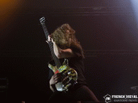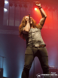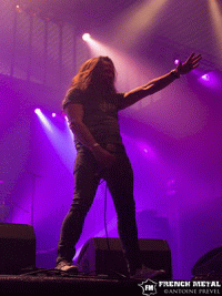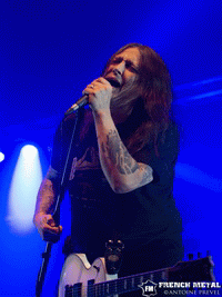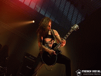 Les Français de KELLS sont la première surprise sur cette affiche, effectivement on est loin du power metal ! En fait on se trouve plutôt du côté du néo metal certes pêchu mais néo metal quand même. J'avais beaucoup aimé lorsque je les avais vus il y a presque un an jour pour jour à l'ACDM Fest à Évreux, je n'en espérais pas moins pour cette deuxième fois. Leur quatrième album étant en cours d'enregistrement, nous avons le droit à quelques extraits dont "Sommeil Infini", on reste toujours dans la même veine apparemment, et ce n'est pas près de s'assagir, toujours aussi puissant ! D'autant plus puissant que KELLS est en live un groupe au top. On enchaîne avec une autre nouveauté : "Irrationnel". Ce titre confirme ce que j'avais pensé quelques instants auparavant. Ils ont livré un très bon set devant un public assez réceptif bien que peu nombreux, comme quoi même si le groupe s'écarte du cœur du festival il arrive à s'imposer. Par contre je trouve moyen le fait de partir à la seconde où on termine de jouer sans merci ni rien…