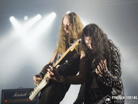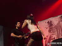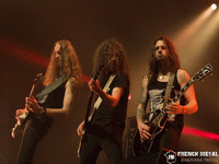 Cette édition commence sous les couleurs du power metal avec les Londoniens de MONUMENT. Le groupe anglais est dans la lignée de Maiden et Helloween pour leurs débuts de carrière. Même s'ils n'égalent pas leurs prédécesseurs, ça n'en reste pas moins intéressant et bien inspiré. Leur premier album "Renegades" sortira au mois de Mai, ça peut valoir le coup de s'y intéresser. Le chanteur a l'air tout fou sur scène, une vraie puce qui vient se coller autres membres du groupes notamment pour du air guitar ou tout simplement leur taper dans le dos. Malgré le peu de monde, ils se sont bien donnés. Dommage seulement pour le mix, la batterie couvrait les guitares dans le mix, c'est quand même bête pour du power où la guitare est si importante. Bref une bonne mise en bouche !