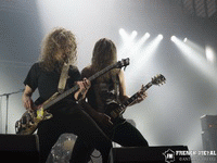 J'attendais avec impatience de voir ENFIN les Allemands d'IN EXTREMO, et je peux vous dire que je n'en ai loupé aucune miette. Oh que c'est bon ! Le groupe nous offre son metal folklorique le plus couillu, malheureusement peu de temps de jeu mais c'est la loi des festivals qui veut ça, on attaque fort avec "Küss Mich" et son introduction qui annonce déjà la couleur ! Je savais que je ne pourrais être déçu avec ce groupe, comment l'être avec un groupe aussi festif ? Je suis certain que même si certains n'ont pas aimé leur musique ils ont malgré tout passé un bon moment grâce au joyeux bordel qui a pris place dans la fosse avec même un moshpit, en plus on a devant nous un frontman très taquin avec le public, qui nous demande de temps en temps si on en veut plus… Évidemment ! Le faux pas n'est pas impossible par contre, il annonce un morceau mais le groupe qui lui connaît la setlist joue un autre, "we play the other… we make a joke !", bref que de la bonne humeur et de la bonne musique, que demander de plus ? J'aurais bien voulu "Horizont" mais ce sera peut-être pour le Motocultor cet été…