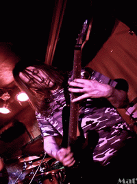 Lors de ce set, le groupe nous a présenté quelques morceaux qui figureront dans leur prochain single : "Babynception". Le groupe débute donc son set avec un de ces morceaux, "Ombilical", qui installe l’univers incontestablement gore du groupe, dans lequel le bambin est la plus grande des convoitises. Cet univers est représenté musicalement par des riffs très rapides, et une voix comme on aime en écouter. Après "Uerhoven" qui sera également dans le prochain single, DEVOUR THE FETUS nous a joué "Putrefying Tumor Placentomized" de leur démo de 2012. Pour l’occasion, ils ont invité sur scène Clément président de l’association du Pavillon Noir, organisatrice du concert de ce soir, pour accompagner Renan au chant, Sa prestation n’était pas très audible, c’est dommage. Par contre, les riffs des morceaux étaient redondants, avec un son de guitare saturé, mais vraiment plaisant, vu l’ambiance qu’il y avait grâce à quelques personnes. La suite des morceaux était sur la même lignée, des fœtus, une musique brutale à souhait avec des riffs assez dansants, et des growls délectables. Un des morceaux les plus plaisants joués par le groupe était "Anti Wrinckle Fetus Cream" avec une intro digne du nom du morceau, et des riffs tranchants ! Globalement, pendant le set de DEVOUR THE FETUS, il y avait peu de gens dans le public, ce qui s’est ressenti dans l’ambiance, qui n’était pas exceptionnelle. Ce qui est délectable avec la musique de DEVOUR THE FETUS, c’est qu’elle n’est pas déstructurée ou simple, car par moments elle est technique avec des solos de guitares tout à fait honorables, et des blasts à la batterie qui laissent envieux(se). C’était donc un plaisir de voir le groupe jouer sur scène, et d’être confrontée à un grind, avec quelques sonorités renvoyant au brutal death.