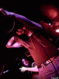 Après le set appréciable de DEVOUR THE FETUS, c’est donc aux musiciens de GRIND-O-MATIC de monter sur scène. Remarquons donc le magnifique t-shirt de Roger au chant : "Le retour de Karl Marx !". Etant que trois, à la différence du précédent groupe, eux n’avaient pas de difficultés à se maintenir sur scène. Ce set a été un vrai bordel, Roger au chant se mêlait volontiers au public, au risque de perdre son micro. Par ailleurs, ce set était entrecoupé de plusieurs slams qui étaient, il faut l’avouer, périlleux au vu de la hauteur du plafond de la salle du Klub : une partie du public était déchaînée comme pas possible. Ce set s’est donc déroulé sans bassiste, ce qui n’enlevait pas le caractère plus qu’honorable de celui-ci. J’admets que GRIND-O-MATIC a été le groupe de ce soir, où j’ai pris le plus de plaisir. Disons que j’ai vraiment aimé leur audace : premièrement avec le manque de bassiste (ils s’en sont très bien sortis malgré ce manque), le fait d’incorporer dans leurs morceaux des passages étranges, indescriptibles crées par un jeu de relais (mes félicitations à Manu à la guitare, qui s’en chargeait), et à la présence scénique de Roger qui était hilarant. Musicalement, leurs deux instrumentales "Freakshow", étaient planantes, et leur duo avec un des musiciens du groupe The Dirty Demented Amateurs sur le morceau "Girl Trouble In The Double Whirl" était vraiment bon, et le jeu à la batterie de Cyril, récemment arrivé dans le groupe, était instinctif, tranchant, remarquable... La musique de GRIND-O-MATIC est un condensé de violence dans des morceaux à la longueur réduite, de riffs déstructurés, et d’ingéniosité musicale. C’est un plaisir de voir le groupe sur scène, bravo à eux ! Tout ce set était dédicacé au Ministère de l’Intérieur. Espérons donc qu’il puisse y être attentif.