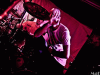 Après le set remarquable de GRIND-O-MATIC, c’est DIKTAT ("Dictateur" selon Roger), un autre groupe parisien qui arrive sur la minuscule scène du Klub (également problématique vu le nombre de musiciens). Le groupe a débuté son set avec "Offended" de leur démo "II" (2008), un morceau technique, brutal, qui ne laisse de répit ni aux musiciens, nu au public. C’est un condensé de violence, qui a installé une atmosphère pesante, suffocante. S’en suit "Indiscipline Jurisprudence", morceau qui garde les mêmes caractéristiques que le précédent, à la différence qu’il est davantage dansant. Il est quand même indispensable de saluer le jeu très puissant de Romain à la batterie, et le jeu ultra rapide d’Alex à la guitare, notamment pendant les solos. En vérité, il serait juste de saluer le jeu de tous les musiciens, des alternances de solos de guitares entre Alex et Jérémie, à la voix de Mathieu qui reste dans les traditions du brutal death, et j’en passe ! On regrettera tout de même que Michael à la basse reste autant en retrait, à cause de la scène minuscule du Klub. Lors de ce set, DIKTAT nous a proposé deux nouveaux morceaux, qui n’ont pour l’instant pas de nom. C’étaient des morceaux restant sur la même lignée que les précédents, mais on pouvait quand même percevoir leur caractère un peu plus abouti, musicalement. Un délice. Ensuite, le groupe nous a joué "The Nihilist" et "Sadus & Marie" également sur la démo "II", morceaux au paroxysme de la brutalité, avec des solos exquis, mais avec un caractère assez linéaire (ceci dit, moins que les autres). Ainsi, le set de DIKTAT s’est plutôt bien déroulé, cependant on entendait trop peu les guitares par rapport au chant. Le public était réceptif à la musique, même si il aurait pu se donner beaucoup plus. Un autre moment foutrement agréable, de la soirée.