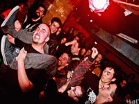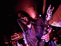 C’est donc sous un torrent d’applaudissements que ROMPEPROP arrive sur scène, en ayant la générosité de passer par le public pour foutre du ketchup (?) sur plusieurs individus. Ketchup avec lequel bien sûr, les trois musiciens s’étaient enduits. Le groupe a commencé son set par l’intro maintenant culte, qui les accompagne à tous leurs concerts. Intro qui installe le caractère très humoristique du groupe. Dès le premier morceau, j’étais déçue car je ne m’attendais pas à une modification de voix aussi flagrante. Le set a été un carnage : je n’ai jamais vu autant de bordel dans la salle du Klub ! Le public était pour une fois à son paroxysme, tous les gens étaient déchaînés... Autant dire que faire des photographies n’était pas chose aisée. Avec cet état dans lequel se trouvait le public, plusieurs personnes ont décidé de protéger la scène, pour éviter (apparemment) ; des dégâts. Rappelons-nous que pour GRIND-O-MATIC, c’était tellement le bordel que le micro est tombé sur l’arcade sourcilière de Manu, ce qui l’a fait saigner. Pour ma part, je n’ai pas été vraiment réceptive au set de ROMPEPROP, je ne sais pas si c’est à cause du contexte dans lequel a été programmé ce concert, ou si c’est parcequ’en live, le groupe ne me touche pas plus que cela. Alors qu’en son audio, jusqu’à maintenant, je trouvais le son du groupe délectable. Bref, c’était tout de même vraiment plaisant de voir ROMPEPROP jouer les morceaux "Pelikanelul" et "Vaginal Luftwaffe" qui sont des torrents de second degré et de musique déshumanisée ! Instrumentalement, le jeu de ROMPEPROP était quasiment toujours le même, "Dirty Dr Dente" au micro et à la guitare avait un jeu qui restait toujours sur les deux cordes les plus graves de son instrument. Cependant, malgré ce jeu, paradoxalement, chaque morceau avait une identité. Par ailleurs, lors de ce set, le chanteur a installé une atmosphère amicale entre lui et le public, l’interpellant formidablement de gentillesse, et d’autres preuves d’amour. Chaque membre participait à l’émergence de ce lien. La folie de ce set s’est poursuivit jusqu’au rappel. Pour finir ; il est quand même bon de préciser que la sono était beaucoup plus forte pour ROMPEPROP que pour les précédents groupes.