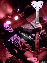 C’est au tour de la tête d’affiche, d’arriver sur scène : ROMPEPROP. Première impression : la salle du Klub est pleine, alors que pour les précédents groupes il y avait beaucoup moins de monde, c’est dommage, et regrettable pour eux. Par ailleurs, les effets sonores au micro était très important, ainsi, quand le public parlait même normalement, le bruit était transformé en quelque chose d’inaudible. Après l’arrivée sur scène du groupe pour régler les instruments (remarquons la magnifique basse de "Bonebag Rob" : un vagin se faisant pénétrer), celui-ci est reparti se changer. Ce qui a laissé le temps au public de s’échauffer, et de se préparer à ce qu’il allait être confronté. Pendant ce temps, le groupe s’est plus que fait désirer.