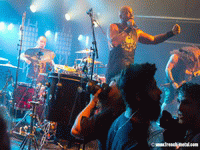 Trois ans après leur première venue dans notre contrée lorraine, SEPULTURA remet le couvert toujours dans la mythique salle de Chez Paulette pour le plus grand plaisir de ses fans. Je pense qu'avec ce live report, je ne vais pas me faire que des amis et ça me passe au-dessus de la tête, entre les "Oui mais Sepultura sans Max, c'est plus Sepultura, "Derrick n'est pas Max", etc... Eh bah moi je leur sors un gros fuck à ces personnes, SEPULTURA reste SEPULTURA avec ou sans Max (Andreas a bien fait de nous rappeler sur scène que cela faisait 20 ans que Derrick faisait partie du groupe (Max a-t-il tenu 20 ans ? Bon OK avec son frangin ce sont les créateurs de SEPULTURA mais l'histoire a fait qu'il n'en font plus partie, point final).