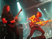 Pour nous faire patienter jusqu'à l'heure H, ce sont les Américains de WARBRINGER qui ont la lourde tâche de chauffer la salle avec du trash old school et c'est ce qu'ils font à merveille 45 minutes durant, le public est chauffé à bloc, les titres s'enchaînent sans aucun répit pour le public (la soirée risque d'être très chaude). WARBRINGER n'a pas trop de place pour bouger sur la petite scène de Chez Paulette car l'énorme batterie de Eloy Casagrande prend pas mal de place mais ça n'empêche pas le combo de rendre le public fou et de le faire transpirer (bonne excuse pour aller se rafraîchir autour d'une bière lors du changement de plateau).