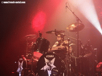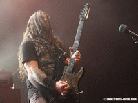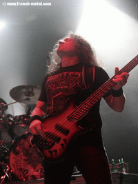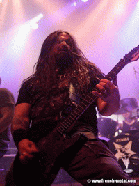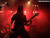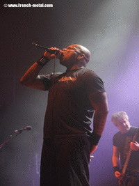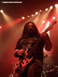 On termine cette soirée avec les Brésiliens de SEPULTURA. Si je ne me trompe pas, c’est la troisième fois que je vais les voir : une première fois au Hellfest (ce fut excellent), une deuxième fois au Graspop (son épouvantable, je suis parti avant) et aujourd’hui hors d’un cadre festival. Ce qui m’a donné l’envie de les revoir avant tout fut les très bonnes chroniques de leur dernier album "The Mediator BetweenThe Head And Hands Must Be The Heart". Dès l’arrivée du groupe sur scène, grosse surprise avec un Derrick Green qui a abandonné ses dreadlocks, donnant un look se rapprochant de Mc Tyson sans son tatouage. Et ce qui m’a bluffé pendant ce concert était le charisme que possédait tout le groupe. En effet, il ne semblait pas y avoir de leader dans le show, tous donnaient une énergie à part égale communiquant leur rage au public qui percevait celle-ci sous forme de pogos. Niveau du son, là je dis vraiment un grand bravo à l’ingénieur du son. Reproduire le son de leur dernier album possédant à la fois un coté saturé et crade identique en live (voire mieux), c’est du grand art ! Ensuite, je ne connais pas les noms des pistes qui ont été jouées, uniquement les classiques comme "Arise", "Chaos A.D", "Roots Bloody Roots" (les bases quand même !). Pour conclure avec SEPULTURA, le groupe a vraiment pris la relève et son envol depuis le départ de son leader Max Cavalera. Autant Soulfly s’enfonce et devient de plus en plus catastrophique en live, autant SEPULTURA continue à se maintenir et s’imposer dans le domaine du thrash metal tribal.