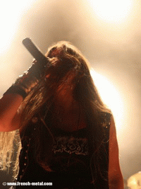 A 19 heures pile poil, c’est le groupe canadien MORTILLERY qui ouvre le bal pour promouvoir son album "Origin Of Extinction". Rectification, bal n’est pas tout à fait le mot approprié, on va dire plutôt qui ouvre les hostilités. Je décris le cadre, cinq musiciens dont deux gentes dames. Une à la basse et l’autre au chant. Evidemment, ça sera Cara McCutchen au chant qui portera le plus d’intérêt. En effet, outre le fait sûr et certain qu’elle possède beaucoup de charme, c’est son chant enragé old school thrash avec quelques pointes de chant clair qui saura être marquant. Et au niveau instrumental, ça joue comme il faut et ça se déchaîne plus sur scène que dans le public. Dommage que ce dernier ne soit pas encore arrivé, ça aurait été plus que la folie dans la fosse. Je retiens le nom du groupe MORTILLERY si je revenais à les recroiser dans le coin.