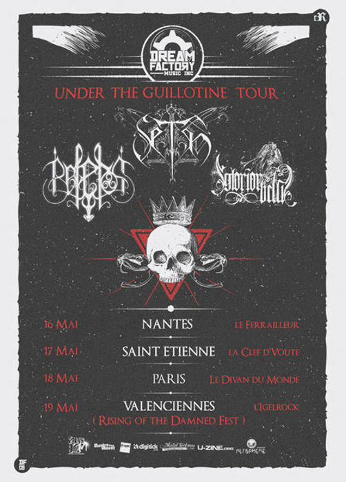 Quoi ? SETH revient ? Oui, oui, SETH revient en live. Et pour une tournée Française joliment baptisée Under The Guillotine Tour. Quatre dates nous sont donc proposées par Dream Factory Music Inc. dont une à Nantes au Ferrailleur. Pour accompagner SETH, on retrouve à leurs côtés les Bretons de BELENOS et les Parisiens de GLORIOR BELLI pour une soirée où des têtes vont tomber !