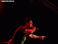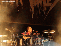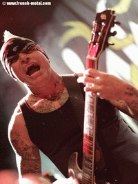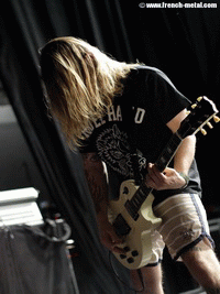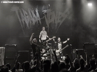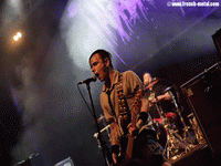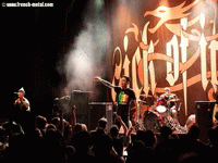 Ça commence avec ANGEL DU$T. Première impression, la cour extérieure semblait autant remplie que la salle. Chose qui ne m'étonnera pas trop car comme je le disais plus haut, le temps était extrêmement agréable ce soir-là. Et pas mal de personnes n'ont pas résisté au fait d'apprécier leur bière en-dehors de la salle. De toute façon, il n'y avait rien de marquant à l'intérieur. Le groupe nous déballait une sorte de punk tendant vers le hardcore avec des moments plutôt bons et des moments plutôt sans intérêt. Dès le début de leur show, ça joue très moyen. On a bien ressenti une certaine fatigue même si les zicos cherchent à plus que se lâcher. Mais là où ça ne va pas du tout, c'est le chant qui manque de style. Le chanteur, même s'il n'était point immobile, manquait vraiment de pêche et cela se ressentait au niveau de sa voix complètement hors-jeu. J'ai écouté une de leurs pistes en version studio, "Stepping Stone", et le chant rend mieux qu'en live. Y'a eu du montage à l'enregistrement ou quoi ? Pour résumer, ANGEL DU$T n'a pas vraiment assuré en tant que première partie. De toute façon, le public ne les attendait pas vraiment en raison d'une fosse plutôt vide, une bar bien squatté et une cour extérieure avec autant de monde qu'à l'intérieur de la salle durant tout le show.