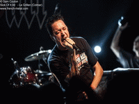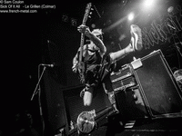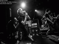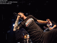 Ce soir, c'est un set un poil plus court qu'ils proposeront mais également un show un poil moins couillu qu'à Montbéliard. On a toujours les feat. avec les deux acolytes présents sur le CD qui ont la particularité d'être alsaciens mais le show semble plus contracté pour les Haut-Saonois. Il faut dire qu'ils sont à la fois pas en terrain plus ou moins conquis comme à Montbéliard et que le public est plus "frais" et plus disparate. Un show en demi-teinte donc, moins à l'aise, mais dans leur registre habituel ils ne se démontent pas et la sauce monte doucement sur ce hardcore à la française. Soulignons que SYNDROM 187, avant ces deux concerts, n'avait pas repris la route depuis plus de deux ans et ce, avec un line-up totalement refait, c'est donc deux examens de passage qui permettront au groupe de prendre doucement ses marques et de reprendre des repères par rapport aux morceaux et à la scène. Le premier enseignement, c'est que le show est cohérent mais qu'il met énormément de temps au démarrage, le groupe a du potentiel mais doit travailler.