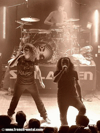 Didou et Viber se livrent à une joute vocale, tandis que Sam quittera à plusieurs reprises ses fûts pour haranguer un public très empathique. Benben et Fryzzzer tout sourire, frictionnent leur gratte avec une énergie qui fait plaisir à voir. Dans la salle l’euphorie est totale, supermen, slams et autres joyeusetés viennent ponctuer un show qui m’aura fait perdre nombre de calories.
