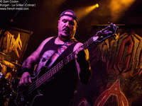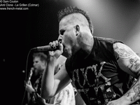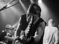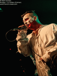 Les Anglais d'ANTI-CLONE investissent ensuite la scène, pour un show qui changera complétement. Dans un principe similaire à Korgan, les musiciens sont masqués et grimmés. Sauf que la musique est quelque peu différente, elle est ici à base de grosse corde sur des 8 cordes c'est ultra gras. Le tout est renforcé par un chant puissant, qui se perd quelquefois, mais le frontman harangue sans cesse  le public un peu plus nombreux qui a garni la salle. Les compositions se ressemblent beaucoup, il faut le dire, d'où une sorte de lassitude sur la fin du set. La violence brute, sombre et froide fait son effet et compense cette sorte de lassitude qui peut intervenir. On a quelque chose de très compact et de gras emmené par un batteur qui se démène comme un beau diable et une basse qui appuie le tout puissamment. Au niveau des guitares, on alterne entre accords lâchés et grosses saccades grasses ce qui est particulièrement jouissif. Le chant  alterne le très bon (parties grasses) et le moins bon (tonalités plus chantées), peut-être faudrait-il réduire ces parties chantées. Bref, c'est une bonne découverte, une bonne date pour les Anglais qui auront peu à peu conquis la salle, qui se mêlera avec les deux guitaristes dans un circle pit. Le set se terminera sur des échanges entre le groupe et son public. Intéressant, à revoir !