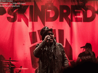 SKINDRED, après un changement de plateau d'une vingtaine de minutes, investit le plateau. Dans une salle acquise à sa cause et qui s'est grandement remplie au fil de la soirée, on assiste à un enchaînement de titres tirés des différentes périodes du groupe et la présence charismatique du frontman, Benji Webbe,  enflamme l'ensemble des personnes présentes. Les compositions sont résolument "dansantes" et le public participe de bon coeur. Le groove et le flow du chanteur font le reste. Indéniablement, SKINDRED n'est pas à la pointe de ce qui est à la mode mais balance une bonne grosse dose de nostalgie et de plaisir non feint à la majorité des personnes présentes. Doucement, c'est une salle complétement mouvante qui se dessine alors que tout le monde était plus ou moins stoïque un quart d'heure plus tôt. C'est la force de ces groupes d'inspiration ou de mouvance néo métallique de remuer une salle,  le groove et la puissance forment un couple efficace.