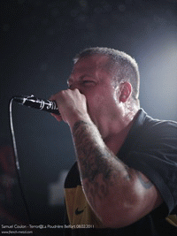 La place est laissée à TERROR, groupe à ne plus présenter et maître du genre avec les Hatebreed. Le changement de plateau ne s'éternise pas ce soir, tout le monde met la main à la pâte et c'est backline commun (en même temps vu la dose de merchandising, y'avait plus de place pour le backline.) TERROR enchaîne les morceaux, un cran supérieur à FIRST BLOOD, qui même s'ils étaient assez énormes, sont quand même un cran en dessous des vérétans du genre.