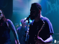 Math (chant) donne le ton dès son entrée avec une présence sur scène impressionnante, et une motivation à toute épreuve. Le set commence avec les premiers morceaux de leur dernier album en date "Chronicles Of Oblivion" (2014 - Kaotoxin) : "Genesis Of Void" et "The Cattle Procession". Le public est chaud ! Les premiers pogos vont commencer avec "Lobotomizing The Masses" pour ne se finir qu’à la fin du concert. Math nous offre un chant puissant avec des growls qui nous hérissent les poils, Vinc et Flo aux guitares nous démontrent chacun leur tour leur dextérité. De leur côté, Max à la basse et Bastos derrière ses fûts, marquent les rythmes lourds et puissants, à force de headbanguer on se demande si on ne va pas se décrocher la tête. Après un super solo de batterie servi par Bastos, et pourtant je ne suis jamais vraiment "solo", mais là je dois avouer que j’ai été scotchée sur place (et je ne pense pas avoir été la seule !), Math reprend les choses en main en demandant un wall of death pour le début de "New Republic" et la foule s’exécute avec joie. DEEP IN HATE sait transmettre son plaisir d’être sur scène et l’énergie qu’ils dégagent est tellement communicative qu’on ne peut qu’apprécier. Et ils finiront leur set avec "From Above The Anthill", tiré de leur album "Origins of Inequality" (2011), et sur lequel on a fini par semer la zizanie entre nos neurones tellement on ne peut rester avec la tête immobile ! Pour le plus grand plaisir de ses fans ce soir, DEEP IN HATE aura joué la totalité de "Chronicles Of Oblivion" (2014) et sincèrement, après la prestation qu’ils nous ont offert, on a forcément envie d’avoir cet album dans sa discothèque !