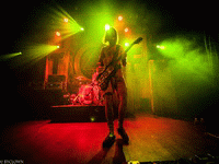 Une voix à peine juste comparé à l’enregistrement studio, un guitariste qui prône une hyperactivité constante de sauts de part et d’autre de la scène et de grimaces en tous genres qui en fait HELAS beaucoup trop (pourquoi sautiller comme un dingo sur le calme d’un solo de guitare ??) et casse alors l’effet explosif qui ne devrait rester que ponctuel et bien choisi. Vous l’aurez compris, je ne suis pas enclin ce soir à virevolter sur la tonalité des riffs du nouveau "Universe" sorti en ce début d’année. La majorité de la foule s’en donne à cœur joie, ce sera pour ma part une posture fixe verre en main sur le côté du bar.