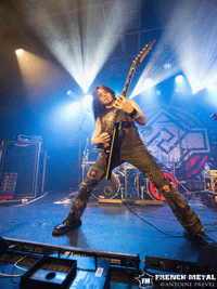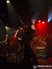 Quel plaisir de voir un groupe fougueux sur scène, là pour son public, pour festoyer, c'est bien le cas avec TURISAS ! Entre Mathias au chant et Olli avec son violon on n'est pas déçu du voyage ! En voilà deux qui savent motiver les troupes en nous faisant frapper des mains, chanter (en tous cas ils essayent !), et avec quelques discours qui passent bien, j'ai adoré d'ailleurs quand Mathias a parlé des personnes qui prennent des photos ou filment avec leur téléphone disant grosso-modo qu'ils lui cassent les noix et il leur demande poliment de les ranger, il a même une mini lampe torche dans la main pour appuyer ses propos ! J'adore ce gars ! Après tout le groupe a un esprit communautaire, en témoigne le nom de la tournée, et justement abordant le neuvième morceau "We Ride Together", il demande si il y a des "Vauréalian" dans la salle, il semblerait que non, ce qui l'a bien amusé, un gars a gueulé "RUSSIA… RASPUTIN !", putain les gens ne retiennent que cette reprise alors que les Finlandais ont un bon paquet de compos excellentes ? Bref… histoire d'achever son discours sur une touche d'humour le chef de la bande nous demande de lever les bras en l'air et si on en a un seulement et bien c'est juste assez, pas moins ! L'ambiance aurait été meilleure avec quelques morceaux plus pêchus pour remplacer ceux mous du genou, là le public se serait vraiment déchaîné.