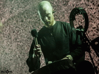 Passons aux choses (je l’espère) un peu plus sérieuses avec WARDRUNA qui, même s’il a débuté sur un trio, a su évoluer sur une formation de 6 musiciens. Arrivée sur scène de la troupe avec, à la fin, comme c’était prévisible, Gaahl et sa stature toujours aussi impressionnante. En quelques mots, car malheureusement il n’y a pas grand-chose à dire sur ce concert, le set aura été à l’image de sa musique, à savoir planant, envoûtant et statique. Statique sur scène d’abord, où seule la flûtiste / choriste se sera tranquillement remuée sur certaines parties, et statique dans la fosse où les fans (beaucoup de grands black métalleux et de petites nenettes), à la limite de la transe, se seront tenus quasi immobiles, les yeux fermés pour la plupart, se contentant de quelques mouvements de tête discrets. Difficile d’évaluer le temps de jeu tant tout semble s’arrêter l’espace d’un instant, tant les musiques, sans couplets ni refrains, sont difficiles d’accès et laissent grand soin à celui qui écoute de se plonger dans ses pensées pleines de vikings et de paganisme.