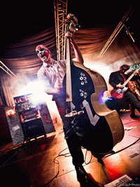 C’est ainsi que, sur leur classique introduction basée sur le thème de la saga Le Parrain, apparaîtront, fièrement zombifiés, derrière le sanglant Ced666 (chant) et l’horrifique contrebasse de Rico, le groupe, précédé par son lugubre univers anticonformiste !