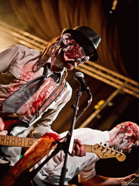 Entrecoupé de quelques petites répliques justifiant cet univers torturé qui est le leur (et lui aussi, comme parfois celui du premier groupe du jour : BARRAKUDA, assez ouvertement inspiré des Beru’) le set se poursuivra avec des titres bien connus (piochant trop faiblement dans leur album déjà vieux de 5ans : "Nice To Meat You") comme "Strip Or Die", "666% Gore’n’Roll", "Marche Macabre" et pour terminer cette soirée animée par de morbides pulsions : "Zombie", tournant ainsi la page de ce samedi 26 Octobre sur les notes malfaisantes et dissonantes du combo qui aura su, comme à son habitude, faire exploser le public (au grand damne des bénévoles ne sachant plus où donner de la tête) par son énergie et ses textes malgré tout réfléchis, calibrés pour soulever la moindre la salle dans laquelle ils se produisent !