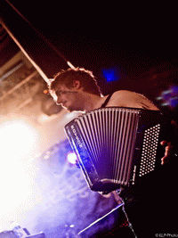 La "guilde" pouvant profiter d’une lumière des plus correctes jusqu’à présent, il faudra cependant souligner le manque de charisme de l’accordéoniste, Tirraël, nonchalamment placé sur le bord de la scène et se laissant porter par les pourtant très conquérantes et festives voix de Haarath (chant principal / guitare) et Hindrik (guitare / choeurs) déséquilibrant l’ensemble...