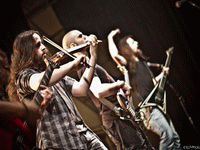 Un savant mélange entre choeurs profonds façon Ensiferum et mélodies folkloriques, rythmées et paillardes façon Korpiklaani, Turisas servi par l’émérite frontman Pau Murillo (guitare, chant) mais également par les deux atouts de la formation : Pau Vázquez au violon, un rôle pour une fois marquant avec un son puissant, audible et apportant, aux côtés de Pol Lemaire (clavier, backings) une touche des plus rafraîchissante comme sur les morceaux "The Old Town’s Inn" ou "Revenge" déchaînant littéralement le public, heureux de pouvoir enfin se laisser aller dans un pit que les catalans auront rapidement chauffé à blanc et préparé à plus d’une demie heure de ripaille !