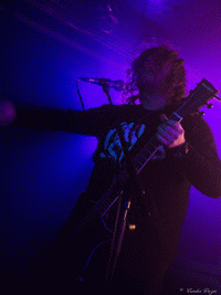Nous poursuivons avec deux morceaux de leur dernier album "Revengeance", sorti l’année dernière. Dommage que le groupe n’ait pas interprété davantage de titres de celui-ci, mais soit. "Throne Of Fire", à l’ambiance tout aussi dérangeante a cependant un rythme plus soutenu qui capte, personnellement, davantage mon attention. Le chant ici est également plus présent, et cela ajoute à l’atmosphère de ce titre. En effet, comment peut-il en être autrement avec la voix légèrement criarde et plaintive de Jon Davis ? "Thunderhoof" enchaîne dans une continuité parfaite, et le public semble en totale transe. J’ai davantage l’impression de participer à quelque rituel qu’à un concert à Paris ! Le jeu de lumières, l’épais nuage de fumée et le choix de faire ressortir les instruments de façon à mettre le chant au second plan sont des détails d’importance, sans quoi la performance aurait une allure bien plus plate et sans saveur.