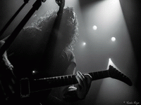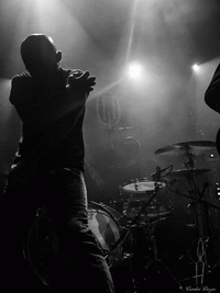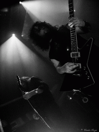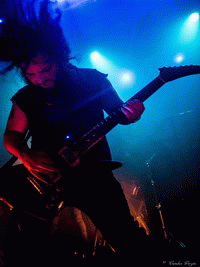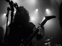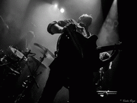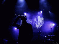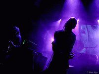 C’est pourtant dans une atmosphère froide très malsaine que THROANE fait son set, due en grande partie à la projection d’images animées dérangeantes par leur beauté artistique et la souffrance silencieuse qui s’en dégage. Un silence tout aussi religieux a envahi la salle, et un constat se présente à nous dès le premier morceau, "Aux Tirs Et Aux Traits" : soit on aime, soit on déteste. Car THROANE n’est pas seulement un groupe de musique, mais bien plus un groupe conceptuel, qui base son art sur la perception auditive, sensorielle et les instincts primitifs. Ainsi, nous sommes immédiatement pris aux tripes, ou pas du tout. Il se trouve que j’ai été très touchée par leur performance, et notamment par les compositions "Aussi Féroces Que Nous Repentons" et "Un Instant Dans Une Torche" pour ne citer qu’elles, très fortes et impeccablement retranscrites sur scène. Le set dans son entier est bien construit et structuré, des interludes cinématographiques le découpent de façon à le présenter comme un parcours, une histoire à écouter et à suivre jusqu’au bout. Celle-ci touche d’ailleurs à sa fin, et aucun titre n’aurait eu mieux sa place ici que "Plus Une Main A Mordre", douze minutes de black dissonant, atmosphérique et glacial. Un morceau puissant et émotionnellement percutant, où tous les membres de THROANE semblent enfermés dans leur propre bulle, comme en pleine transe. Une composition bouleversante et marquante pour une performance tout aussi forte.