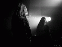 C’est donc dans un Petit Bain entièrement enfumé que WOLVES IN THE THRONE ROOM arrive sur scène et entame sans plus de cérémonie "Thuja Magus Imperium", issu de leur dernier album "Thrice Woven". Un morceau parfait pour débuter, à l’intro à la fois douce et céleste, qui enchaîne sur du black atmo / mélo où se superposent les guitares grondantes. Je déplore seulement le clavier, qu’on entend très peu, alors que son rôle est tout de même plus important que celui d’être un simple fond sonore. Je trouve cependant satisfaction chez le chanteur / guitariste Nathan Weaver qui, malgré son apparente réserve et discrétion, a une vraie présence sur scène, et un timbre de voix qui a le don de nous faire voyager dans un autre monde, celui du black ambient, si unique et extraordinaire. On se rendra d’ailleurs vite compte que ce concert est fait en crescendo, chaque titre interprété semble pousser le concept ambient encore plus loin que le précédent. Ainsi, "Born From The Serpent’s Eye" - mon coup de cœur de la soirée -, excellent morceau planant et mélodique aux atmosphères harmonieuses multiples, nous guide doucement vers "The Old Ones Are With Us", qui atteint l’apogée du black lent et mélancolique, mêlé à des guitares aux riffs simples et incisifs. On ajoute à cela la nappe aérienne de clavier et un chant éraillé et nasillard, et vous avez le meilleur de WOLVES IN THE THRONE ROOM.